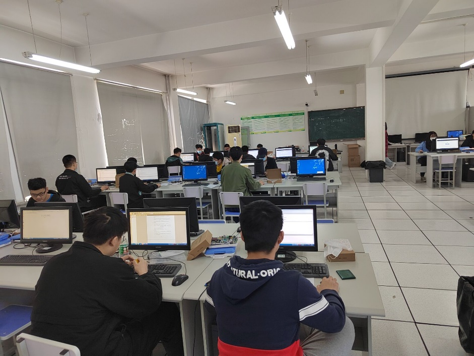 为做好赛点防疫工作,本次竞赛采用“服务器-浏览器”方式发放试题、回收答案,选手在答题时无法访问互联网。在持续五个小时的高强度比赛中,选手们全神贯注,认真完成各项竞赛项目。