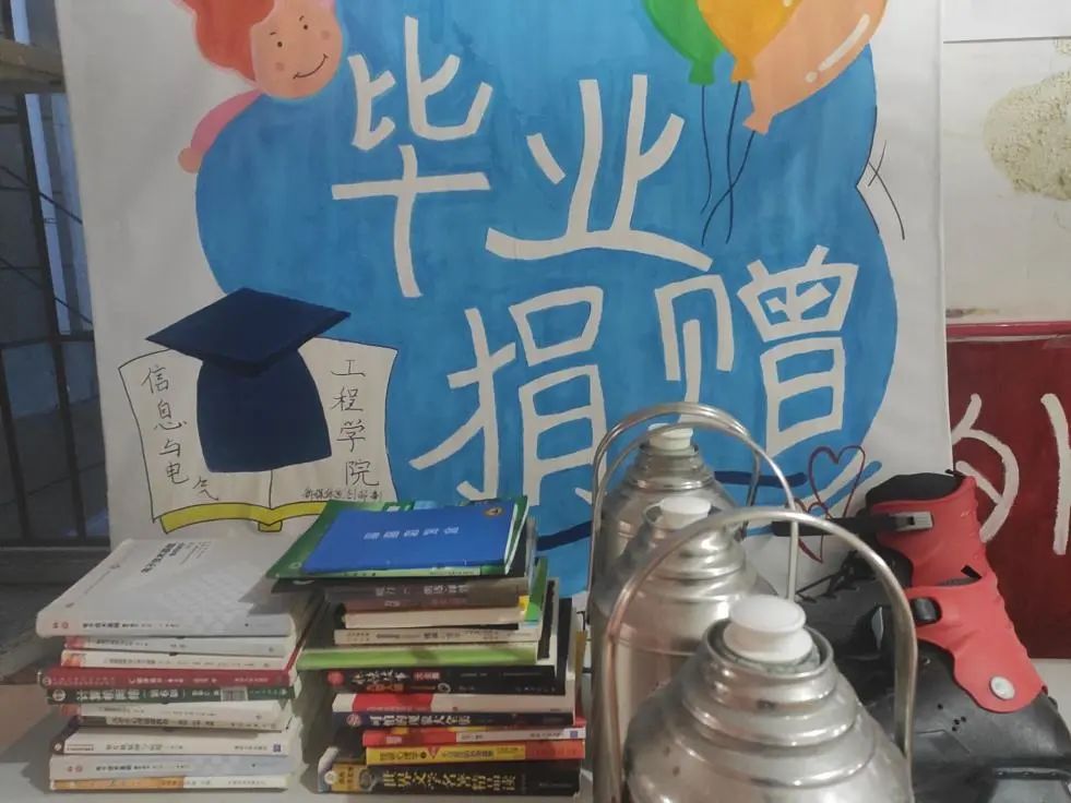 毕业已至,学子归四方。捐赠物品摆满了捐赠桌子,每一份捐赠的物品都承载着2022届信电学子的爱心与寄托,不仅减轻了行囊,还能将爱心传递。就像这些物品照亮你的青春一样,也让这些物品陪伴和照亮另一个满怀梦想的少年吧!