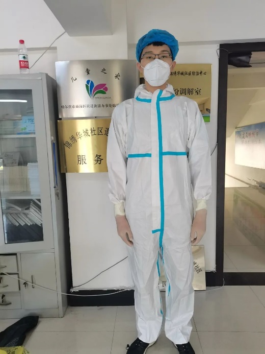 20级通信1班姜煜枫在社区担任疫情防控志愿者