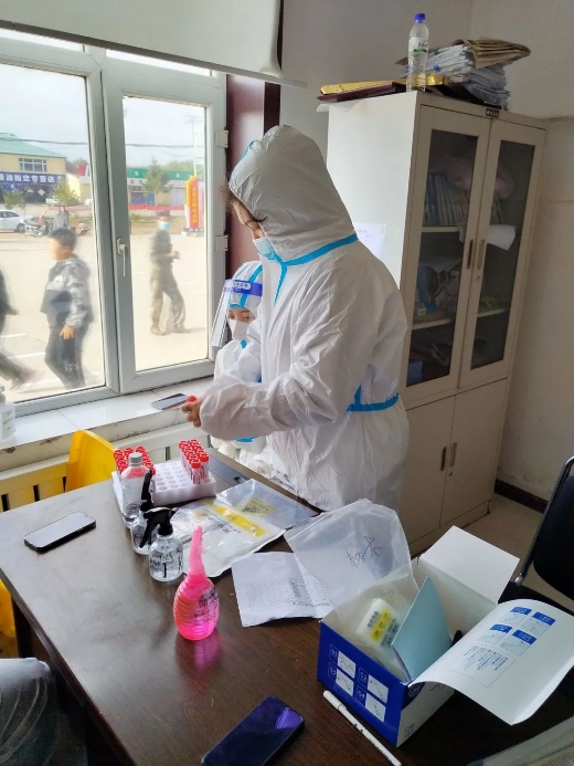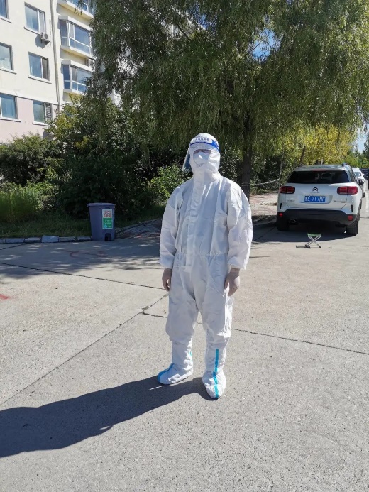 20级农业工程与信息技术研究生高嘉欣在社区担任疫情防控志愿者负责核酸采样