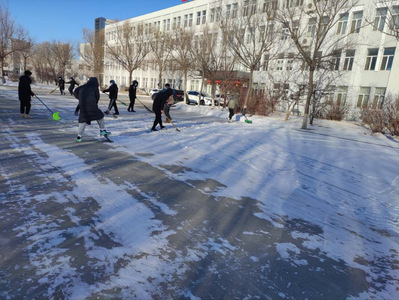 为进一步爱护校园环境,保障师生通行安全,12月3日上午,u8国际平台组织20名志愿者清扫公司主楼东路路段积雪。