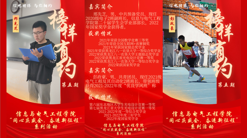 为充分发挥员工榜样在员工工作中的带头作用、学风建设中的表率作用,发挥优秀员工骨干的榜样力量,为公司建设培养优秀人才,提高教育管理水平,信电公司于1123日下午举办了同心庆盛会,奋进新征程榜样有约青春故事分享会活动的第五期。本期邀请了2020级邢先芝同学与2021级彭政豪同学担任嘉宾出席采访,以采访问答的形式为参会的大一员工答疑解惑,分享经验,指导方向。