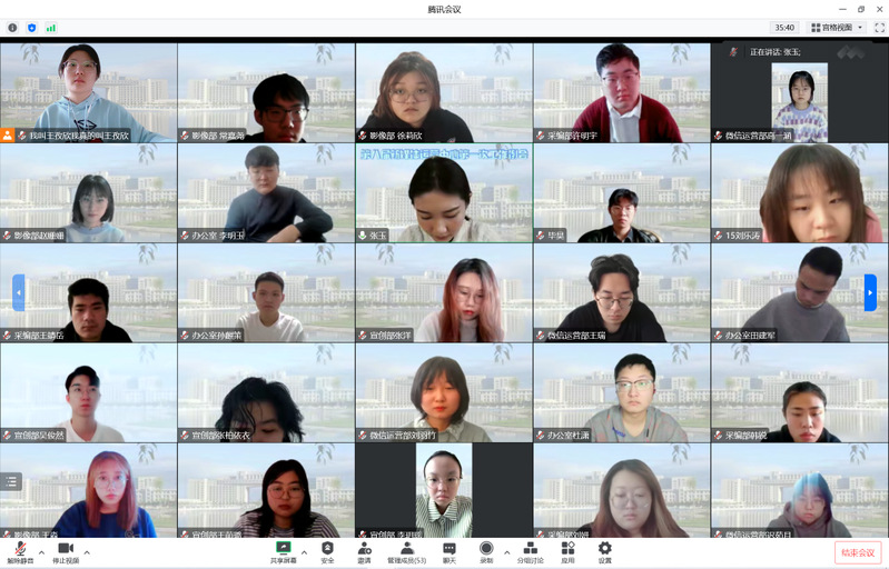 12月4日,公司第八届新媒体运营中心举办了本学期第一次例会,本次例会采取网络线上形式召开。参加此次例会的有新媒体指导教师张玉、新媒体主编团、各部门副部长及志愿者。