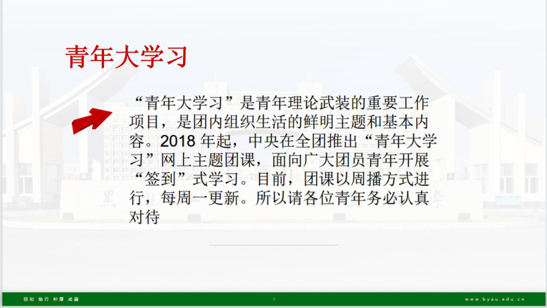 通过讲解“第二课堂”成绩单制度、“到梦空间”APP的操作步骤,使新同学能够意识到参与第二课堂活动的意义所在,并帮助同学们熟练掌握“到梦空间”APP的使用方法。同时对青年大学习工作进行安排部署,并通过讲解宣传学习操作流程,确保每名青年团员熟知流程,按时参与学习。