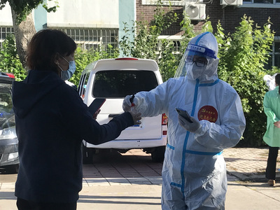 教师曹洪军负责核酸扫码 教师谭峰维护秩序