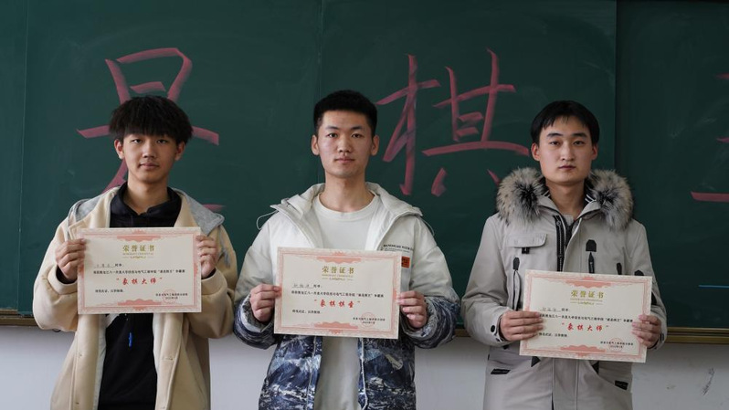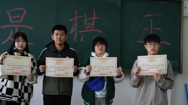 五子棋组:王子文荣获一等奖——“五子棋棋圣”荣誉称号,李嘉琪、张淼荣获二等奖——“五子棋大师”荣誉称号,马冬宇、刘海龙、马晓惠、彭盈、周廷标荣获三等奖——“五子棋小能手”荣誉称号,张祺骐荣获优秀奖——“五子棋优秀棋手”荣誉称号。