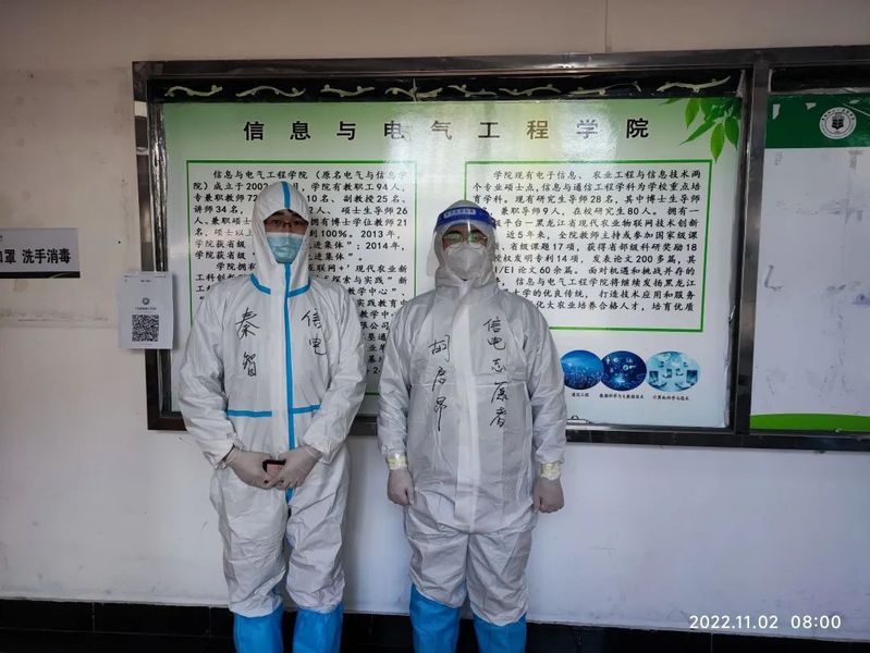 员工公寓1号楼辅导员秦智、志愿者胡启昂