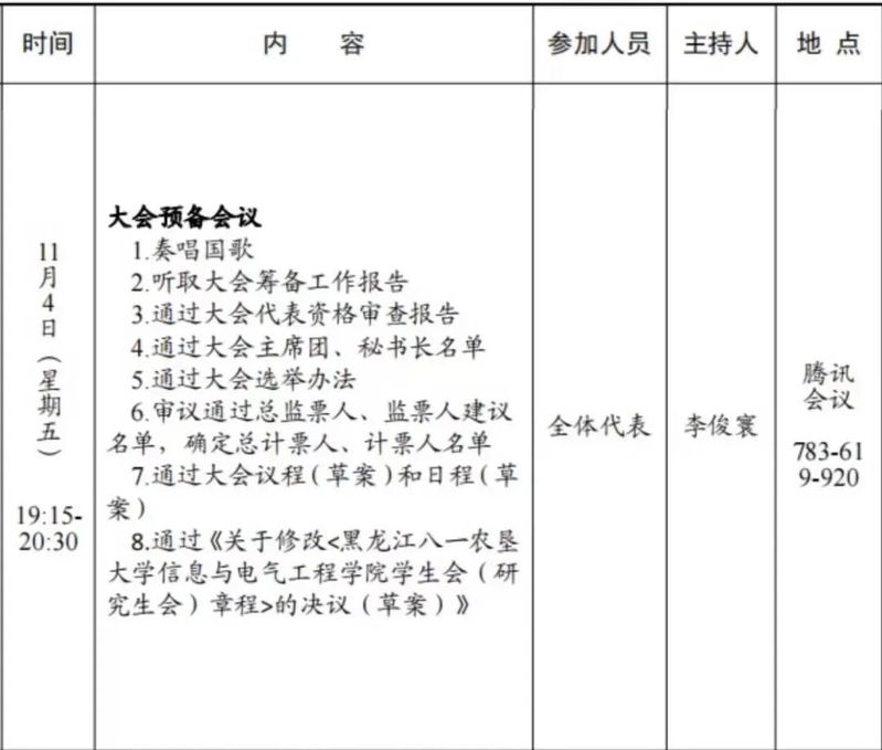 会议上,大会筹备工作委员会会务组组长、研究生会指导教师林立宏宣读了《大会筹备工作报告》;大会筹备工作委员会材料组组长于天齐宣读了《大会主席团、秘书长名单》《大会总监票人、监票人建议名单,总计票人、计票人建议名单》;大会秘书长、员工会指导教师张玉宣读了《关于修改<u8国际平台员工会(研究生会)章程>的决议》。