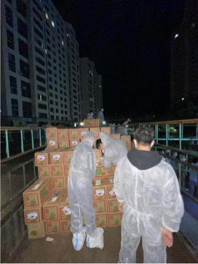 夜无眠,战“疫”还在进行。当前我市疫情防控形势异常严峻复杂。自本轮疫情开始,我同各个市直机关党员志愿者便坚守在抗疫前沿阵地,为有效阻断疫情传播,减少人员外出,政府第一时间送来了菜品,所有人员披星戴月,及时为居民分放蔬菜包。把小区当作战场,视邻友为亲人,为党性守护家园,用实际行动阐释了共产党员在关键时刻的使命与担当。不忘初心、牢记使命、不畏风浪、直面挑战就一定能汇聚起坚不可摧的磅礴力量,坚决打赢这场疫情防控阻击战守护好人民群众的生命安全和身体健康。
