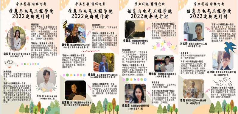 本次线上迎新,信电公司设计了多渠道、多角度、多层面、多互动的迎新模式。多渠道,为了给新同学营造浓厚的欢迎氛围,在此之前,信电公司先后从研究生和本科生群体筛选出两批优秀的信电学子,补充到各新生班级辅助班主任工作,本科生负责配合年级辅导员将迎新各项统计工作做细做实,研究生负责担任班助引领新生班级的学风和班风建设;多角度,线上迎新要更加细致的展示公司的热情和周到,为此公司在全院范围内征集了409份学长寄语,将学长寄语制作成欢迎卡片,每份寄语的作者都是公司四等以上专业奖学金的获得者,他们将所获荣誉附在卡片落款处,目的是在新生中树立榜样引领作用,在视频核验环节结束之后,每位新生都会收到来自信电公司的问候卡片,“是公司的学长发给我的,上面还有学长的祝福和期待,看到学长获得那么多荣誉,我也要向学长学习”,这是新生们对学长寄语的最好反馈;多层面,信电公司开展线上迎新的同时,还在同步向新生介绍公司的特色社团,鼓励更多优秀信电学子加入社团绽放光彩,公司科技竞赛获得者风采展,让众多信电新生看到了科技的光芒和竞赛的闪亮,相信未来将有越来越多的信电学子逐鹿赛场,为信电增添荣光;多互动,线上迎新结束之后,公司将开启系列的迎新活动,主题班会、社团宣讲、党团建设启蒙、优秀学子风采展......每一个环节都是为夯实信电新生求学地基而设计的,目的在于让同学们感受到拥有光荣历史的信电风采,开启崭新而精彩的大学时光。