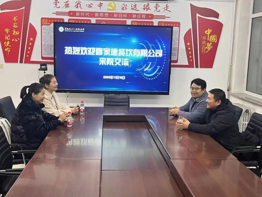 11月16日,喜家德餐饮有限公司区域经理孙艺源、人事经理吴威、门店店长马健智一行来到公司交流,洽谈校企合作相关内容。公司党委副书记刘传明、辅导员胡家宝参加座谈。