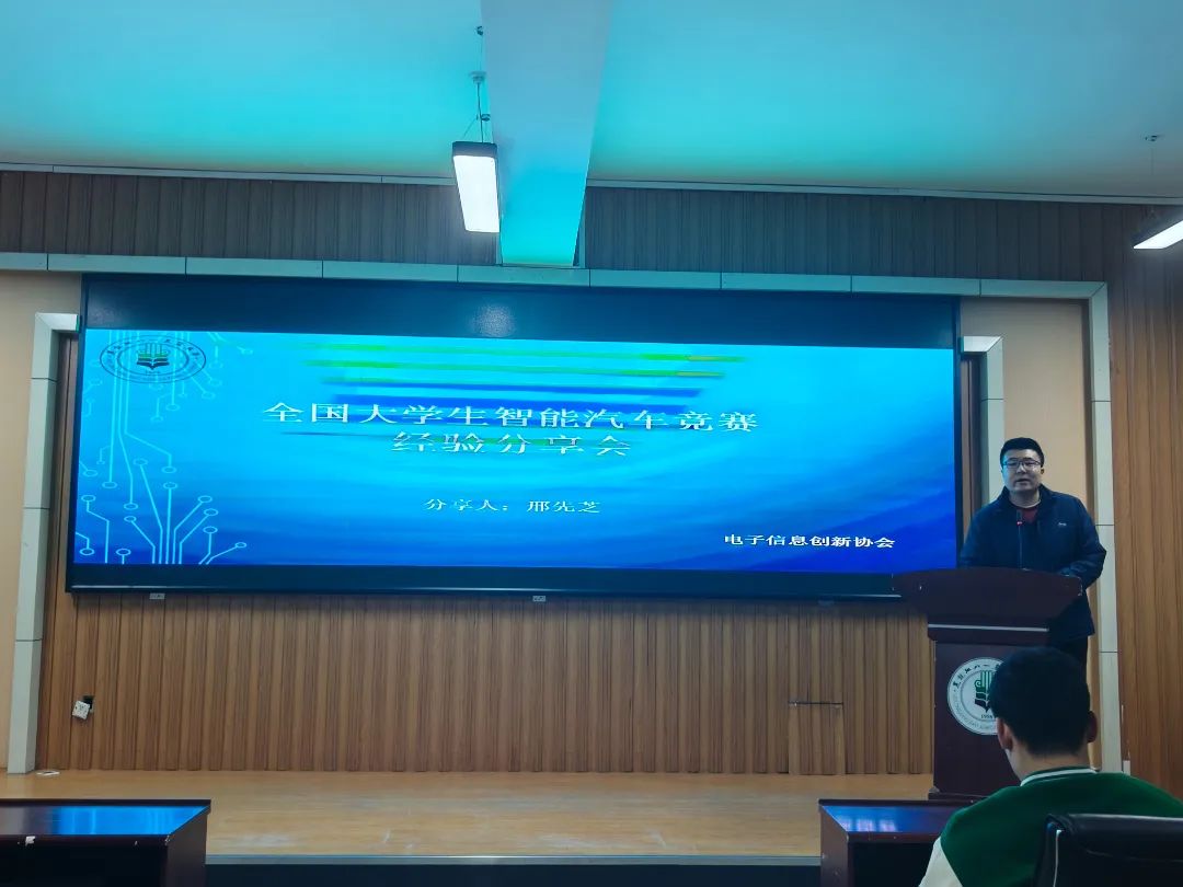 活动邀请了电子信息创新协会的优秀成员先后为同学们介绍了关于全国智能车竞赛的相关比赛信息与备赛经验。电子信息创新协会的赵艳庆学长,讲述了有关车赛的声音信标浅析,并分别从信标系统,传感器与算法两个方面进行了讲解;邢先芝学长为同学们讲解了有关整体软件部分设计的相关内容,他结合幻灯片的放映和自身的经验为同学们进行答疑;那泽栋学长结合自己的实际经验和技能,从理论到实践,从基础知识到技术难题,全方位地为参赛同学们进行了讲解和指导。在互动环节,同学们积极参与提问和讨论,协会成员也耐心细致地解答了同学们的问题。