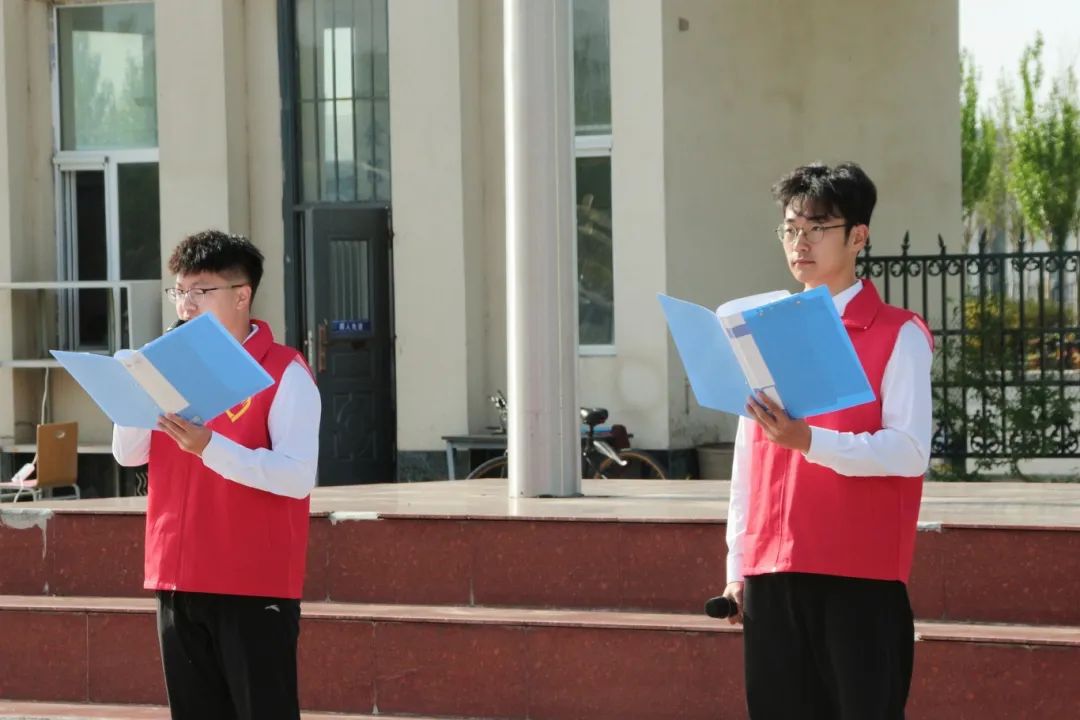 伴随着清晨第一缕阳光,信电学子齐聚国旗之下,怀着对祖国的无限热爱和崇高敬意。随着国旗护卫队队员的矫健步伐,鲜艳的五星红旗在雄壮的国歌声中冉冉升起。全体师生肃立,向国旗行注目礼。这一刻,历史的厚重和民族的骄傲伴随着国旗在晨曦中飘扬,象征着国家的繁荣与昌盛。随后,院员工代表李睿带领公司全体员工郑重宣誓,他们坚定表示要热爱祖国、努力学习,为实现中华民族的伟大复兴而努力奋斗。员工代表刘亦菲、李知涵、卢玮东、张嘉麟四位同学依次走上台前,在国旗下进行红色宣讲。王禹博和杜昕宇、贾济源和张嘉麟作为公司国家级红色精神宣讲志愿服务团队代表,为全体同学深情讲述了延安时期的艰苦岁月,讲述了中国共产党人如何在延安这片红色土地上孕育出伟大的延安精神,并号召信电学子们要继承和发扬这种精神,始终保持对党的忠诚和对人民的热爱。