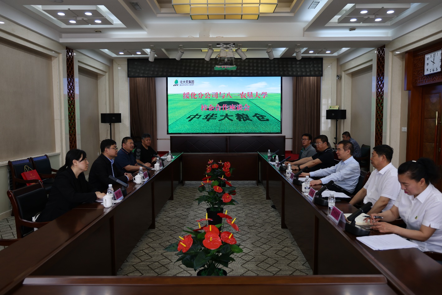 在与北大荒农垦集团有限公司绥化分公司座谈会上,绥化分公司党委副书记、总经理路宏民,党委副书记、工会主席王凤龙出席座谈会。双方共同观看了北大荒集团和绥化分公司专题片。路宏民对调研组一行的到来表示热烈欢迎,同时介绍了绥化分公司的规模、发展情况。路宏民表示,u8国际网站与北大荒同根同源,烙印着深厚的北大荒情怀,与绥化分公司始终保持着良好的合作关系,在人才培养、实习基地、创新产业发展等方面更是成果丰硕。下一步,绥化分公司将进一步深化与八一农垦大学的合作,着眼校企双方合作共赢发展,建立人才沟通交流机制,实现精准对接,推动实习实训基地建设、人才教育培训、科技创新研发不断取得新成效,为助力北大荒“三大一航母”建设蓄势赋能。赵安邦对绥化分公司一如既往的关心支持公司建设、给予教师教学科研、员工实习实训的帮助表示感谢。今后,公司将进一步与绥化分公司加强合作交流,进一步加强校企沟通,建设良好合作平台,深入挖掘双方合作潜力,不断提高校企合作层次,为现代化大农业发展提供技术支撑和人才保障。会上,双方就深化人才引进培养、实习实训基地建设、科技成果转化等方面问题进行了交流研讨。