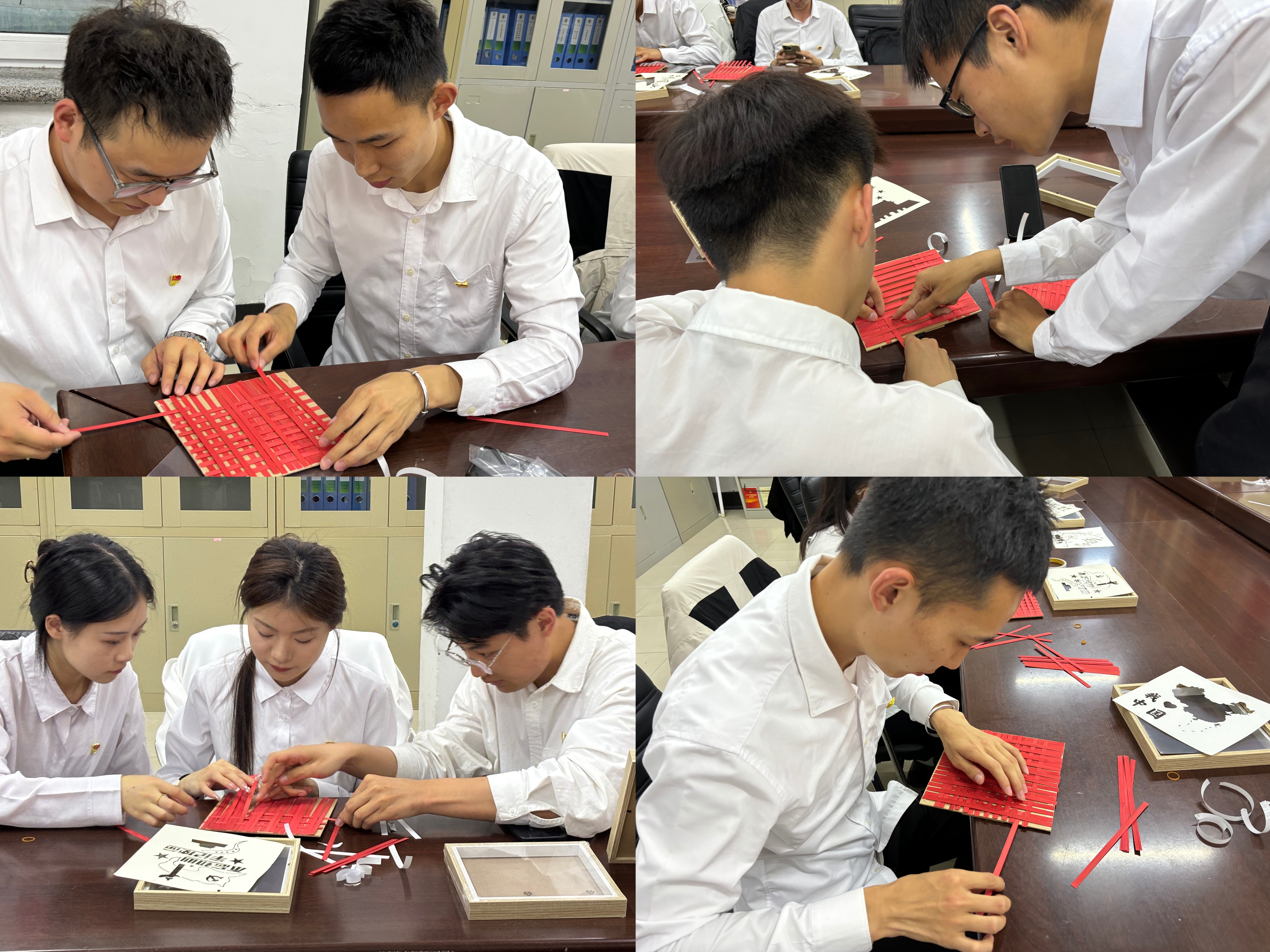 6月22日,员工党支部组织开展竹编画活动,员工按照事先设计好的模板,认真地开始了竹编的创作。在制作过程中,大家互相帮助,共同协作,不仅提高了竹编技艺,也加深了对党的历史的理解。经过一个小时的精心制作,一个个精美的竹编作品展入眼帘,它们不仅展现了员工党员的创意和手工能力,更蕴含了对党的无限忠诚和对红色文化的深深敬意。此次活动通过手工制作的方式,让员工党员们深入了解红色革命历史,感受先烈的英勇事迹,激励他们传承红色基因,牢记初心使命。