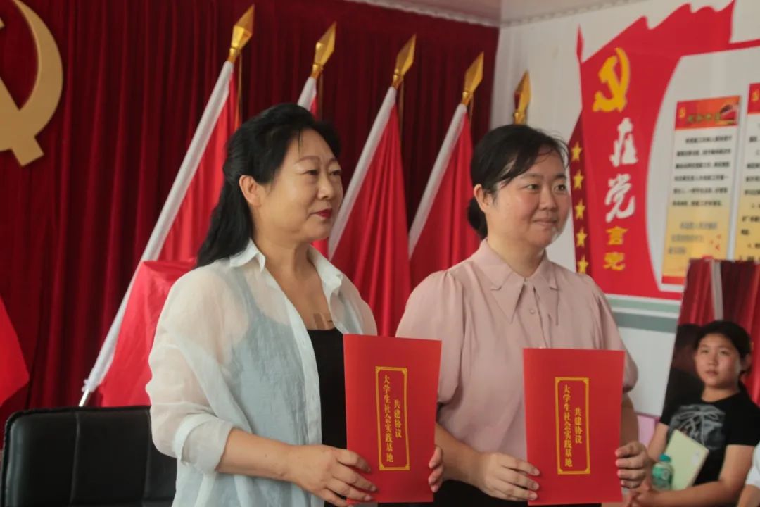 公司党委副书记刘传明和村支书马儒明签订《党建结对共建协议》;公司分团委书记潘妍和村主任李春波签订《老员工社会实践基地共建协议》。并参加揭牌仪式。