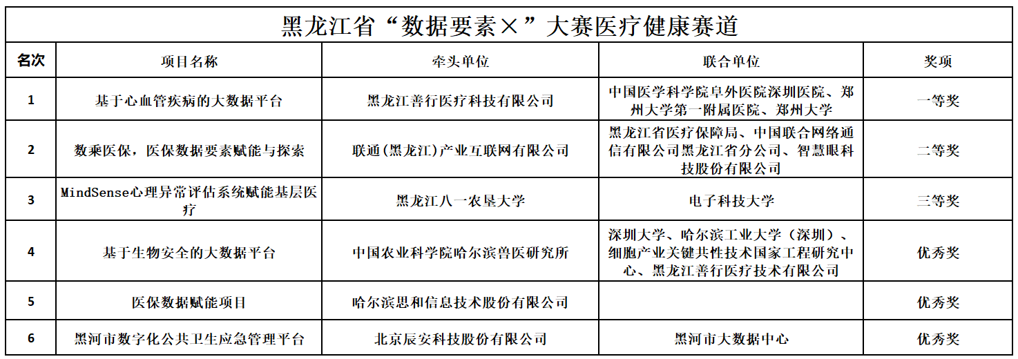 2024年“数据要素×”大赛黑龙江分赛由国家数据局、黑龙江省政府指导,黑龙江省发展和改革委员会、黑龙江省数据局举办,以“数据赋能、乘数而上”为主题。黑龙江分赛设立工业制造、城市治理、应急管理、绿色低碳、现代农业、商贸流通、交通运输、金融服务、文化旅游、医疗健康10个赛道,自6月中旬启航以来,共吸引了300多支队伍参与。在9月7日的决赛中,经过激烈角逐,30支优秀队伍以其卓越的创新成果荣获殊荣,其中20个项目将代表黑龙江省出征全国总决赛。