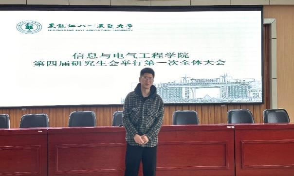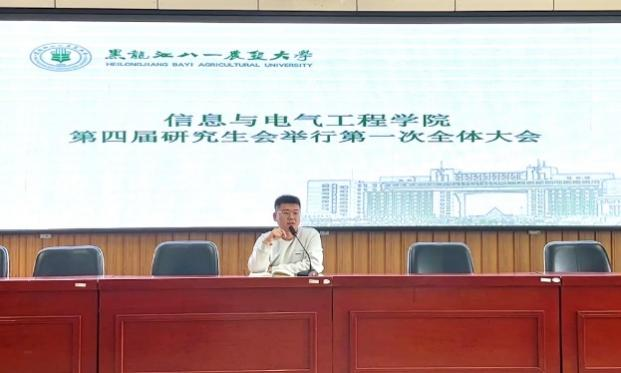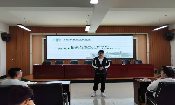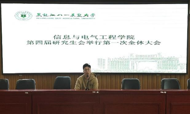 第四届研究生会主席徐汉林介绍了第四届研究生会组建情况。他提出,新一届研究生会将接过上一届研究生会的接力棒,赓续初心,砥砺前行,为全体研究生搭建起一个交流互动与自我展示的平台。同时,他强调了研究生会的职责与使命,希望研究生会成员以饱满的热情、高度的责任感投入到各项活动中去,在总结与反思中,不断提升个人素质与服务能力。