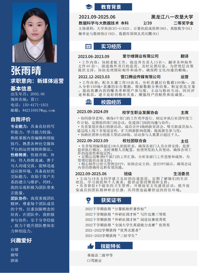 为帮助公司员工更有针对性的解决简历制作中问题,提升求职竞争力,颁奖仪式结束后,辅导员张玉面向毕业生开展简历制作培训,详细讲解简历制作过程中要注重人职匹配,突出求职意向,并从简历的基本内容、排版格式、提炼方法等方面做好指导。本次简历大赛颁奖仪式暨简历制作培训旨在提升员工就业能力,通过以赛促学、以赛促练,带动更多毕业生尽早做好求职准备与职业定位。