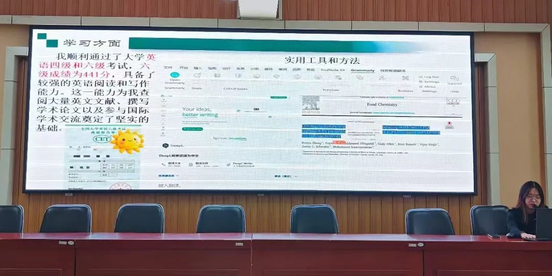 董欣怡则聚焦于学习技巧和科研经验上,包括如何归纳复习内容、撰写和阅读学术论文的实用工具分享,并为本科生罗列了科研成果对自己未来规划的一些帮助。她鼓励学弟学妹们早规划、早准备,注重积累,全面提升自己的综合素质。