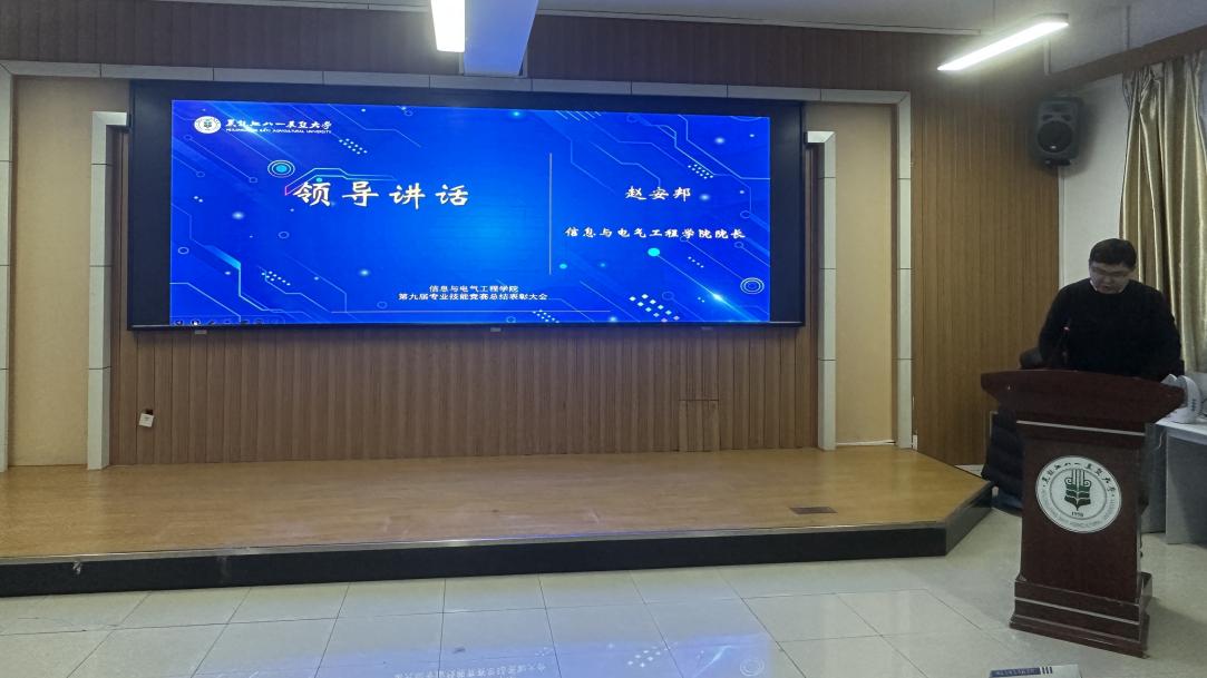 赵安邦经理在讲话中回顾了公司2024年本科生科创活动的良好成绩,对一年来积极投身科创事业的公司师生表示赞扬。赵安邦表示:公司师生要满怀期待的迎接2025,迎接第十届专业技能竞赛。希望全院师生通过专业技能竞赛,共同上好一堂生动的实验实训课。