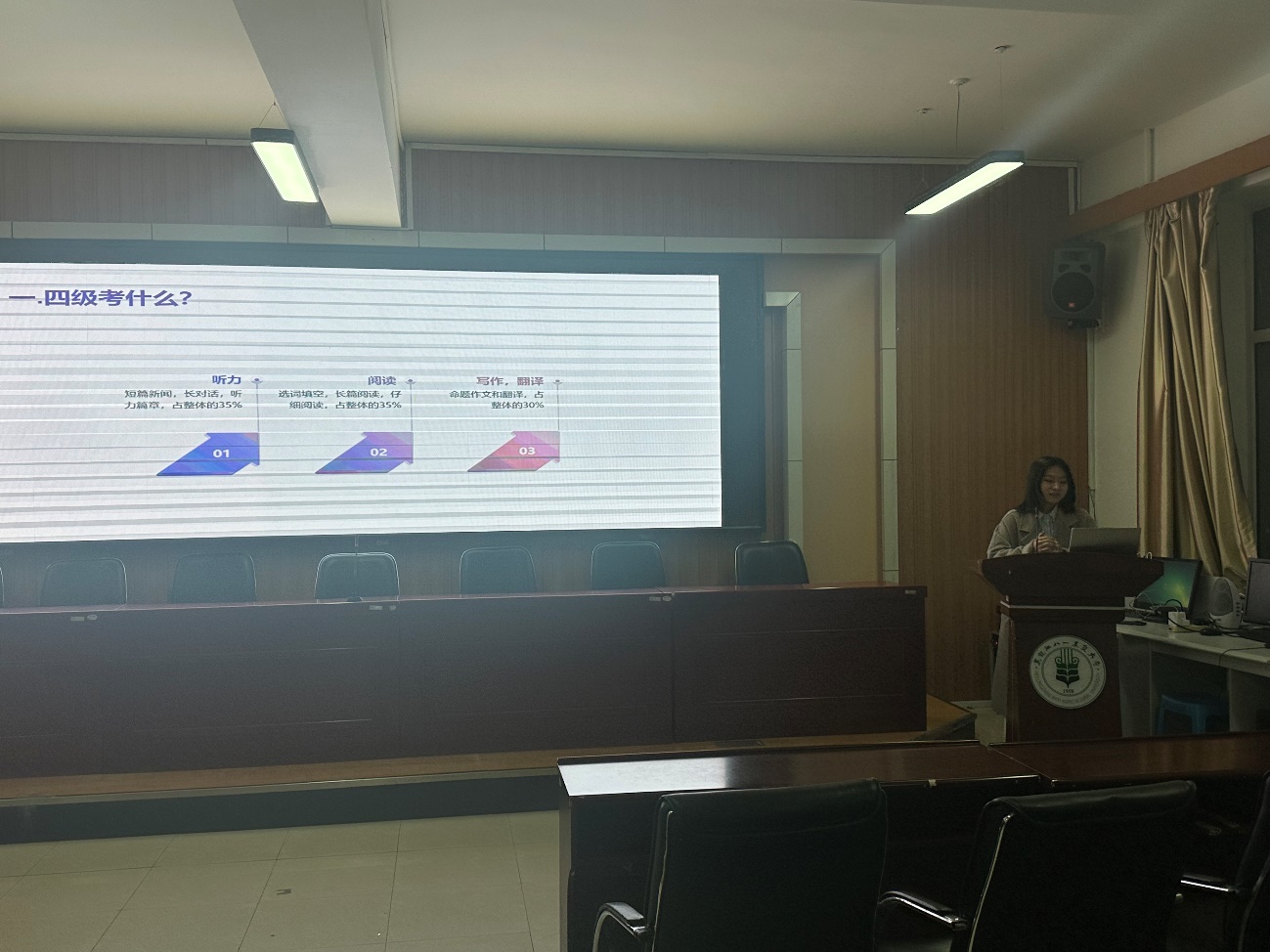 分享会上,孙嘉璐、张硕、熊祈瑞、孙瑀晗、李晓彤等几位高分通过四级考试的同学分别从听力、阅读、写作和翻译四个部分进行了详细的讲解。他们结合自身的备考经历,分享了高效的学习方法和应试技巧。例如,听力部分强调了日常积累和多听真题的重要性;阅读部分则建议同学们掌握快速阅读和定位关键信息的技巧;写作和翻译部分则分享了如何通过模板练习和积累常用句型来提高得分。此外,分享会还设置了互动环节,同学们积极提问,分享者耐心解答,现场气氛热烈。