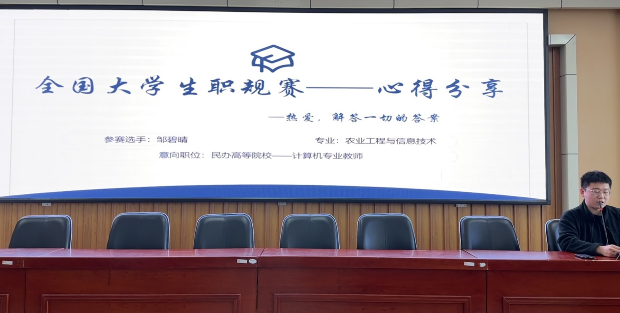 本次特邀嘉宾邹碧晴同学(2023级农业工程与信息技术专业硕士),作为黑龙江省第二届全国老员工职业规划大赛就业赛道研究生组铜奖得主,她结合自身参赛经历,向在场同学分享自己从备赛到参赛的整个心路历程,从多角度多方位详细介绍了如何确定职业目标,充分挖掘自己的闪光点,如何提升自己的认知,提高眼界高度,如何增强沟通表达能力,勇敢展示自己等感悟。她还鼓励同学们,参赛的意义不只是获奖,更让她清楚的看见自己走过的路,更好的定位职业方向,完成个人成长与自我超越。