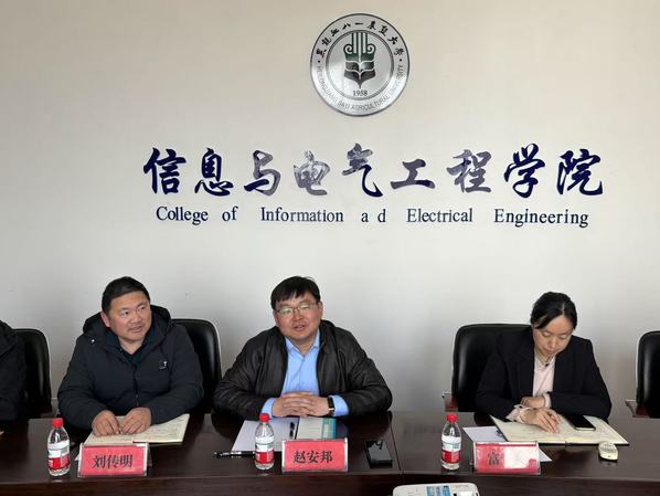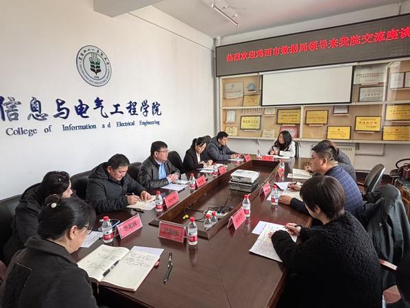 3月28日下午,鸡西市数据局副局长赵强一行三人赴公司开展交流座谈。座谈会在信息馆308会议室举行,由公司经理赵安邦主持,党委副书记刘传明、副经理富爽及骨干教师代表参加座谈。