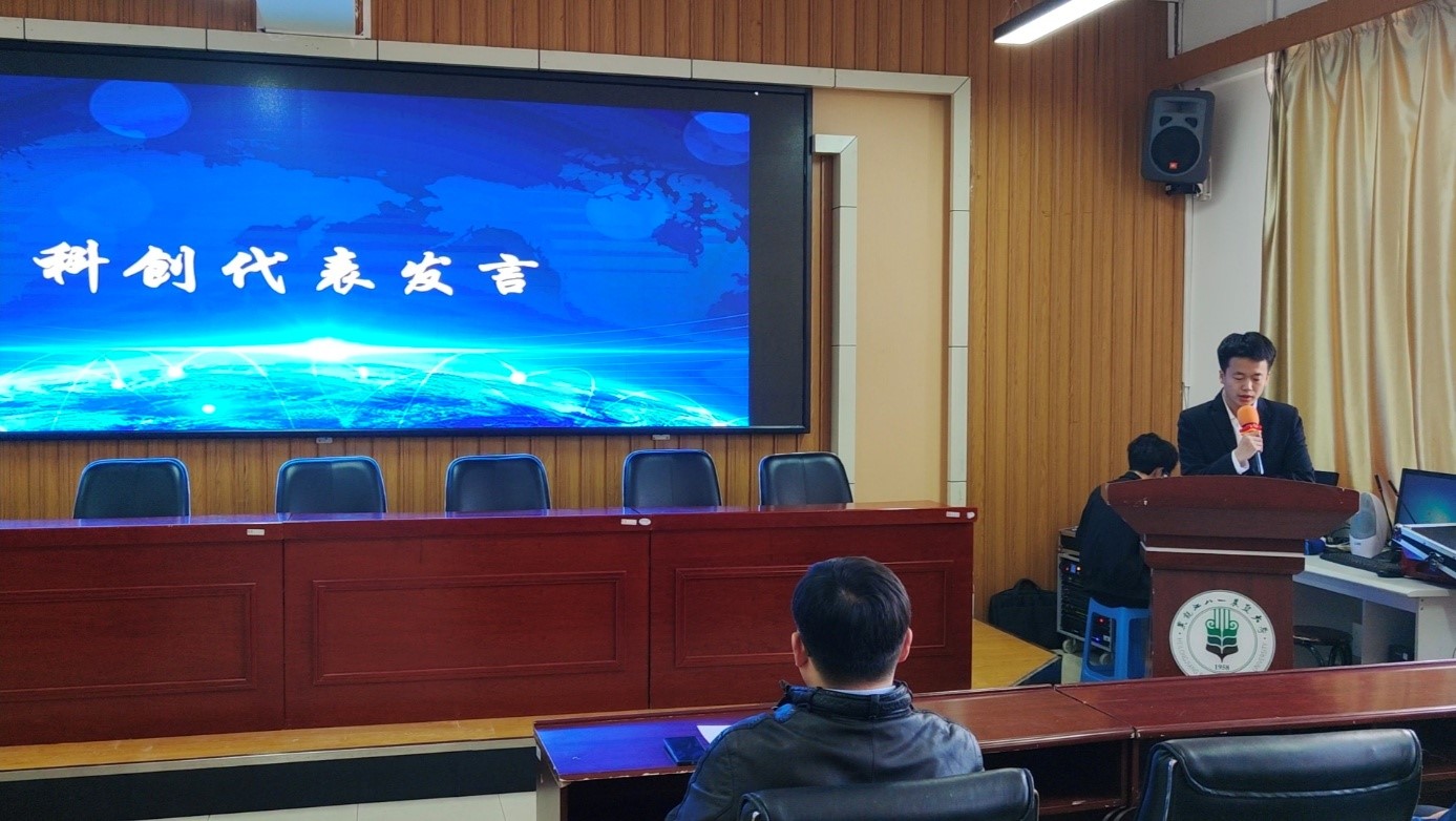 员工代表张轩睿、武思婷做参赛经验分享,交流了参加科创比赛的经验和取得成绩的喜悦成果。