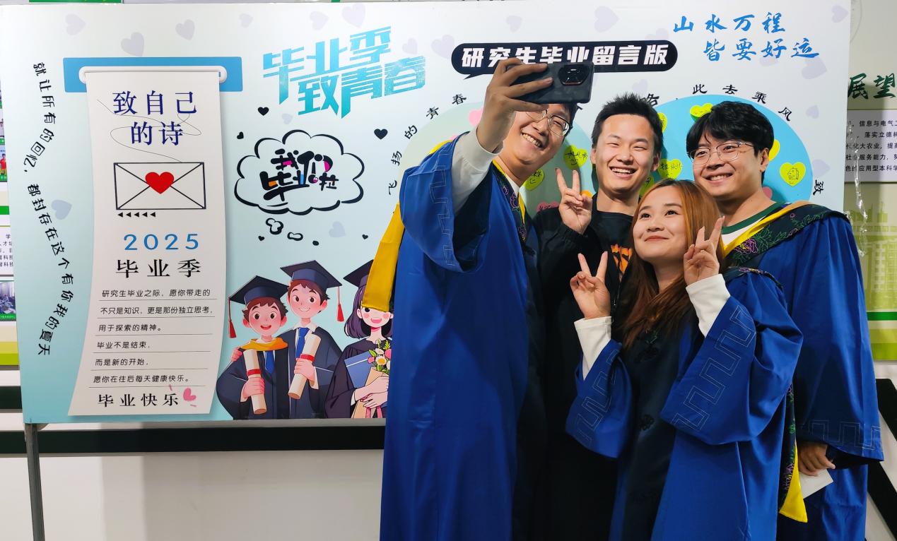 毕业季的校园,处处是定格的瞬间。在标志性的公司大楼前、绿茵场上留下青春的笑靥,更特别设置了“毕业季致青春”留言板打卡点,写下对未来的期盼、对过去三年的怀念以及对师弟师妹们的祝愿,并与同窗、与导师、与那段拼搏的岁月合影留念。每一帧照片,都将成为未来回望时最温暖的坐标。