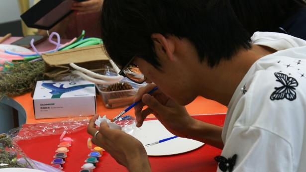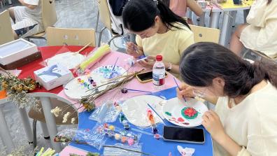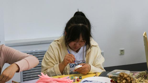 走进活动现场,丰富多彩的创意材料瞬间点亮了大家的眼眸。洁白的石膏静静等待着绚丽色彩的注入,柔软的扭扭棒即将化身为各种形状,素净的相框和扇子渴望着被赋予独特的灵魂,艺术扎包也期待焕然一新。
