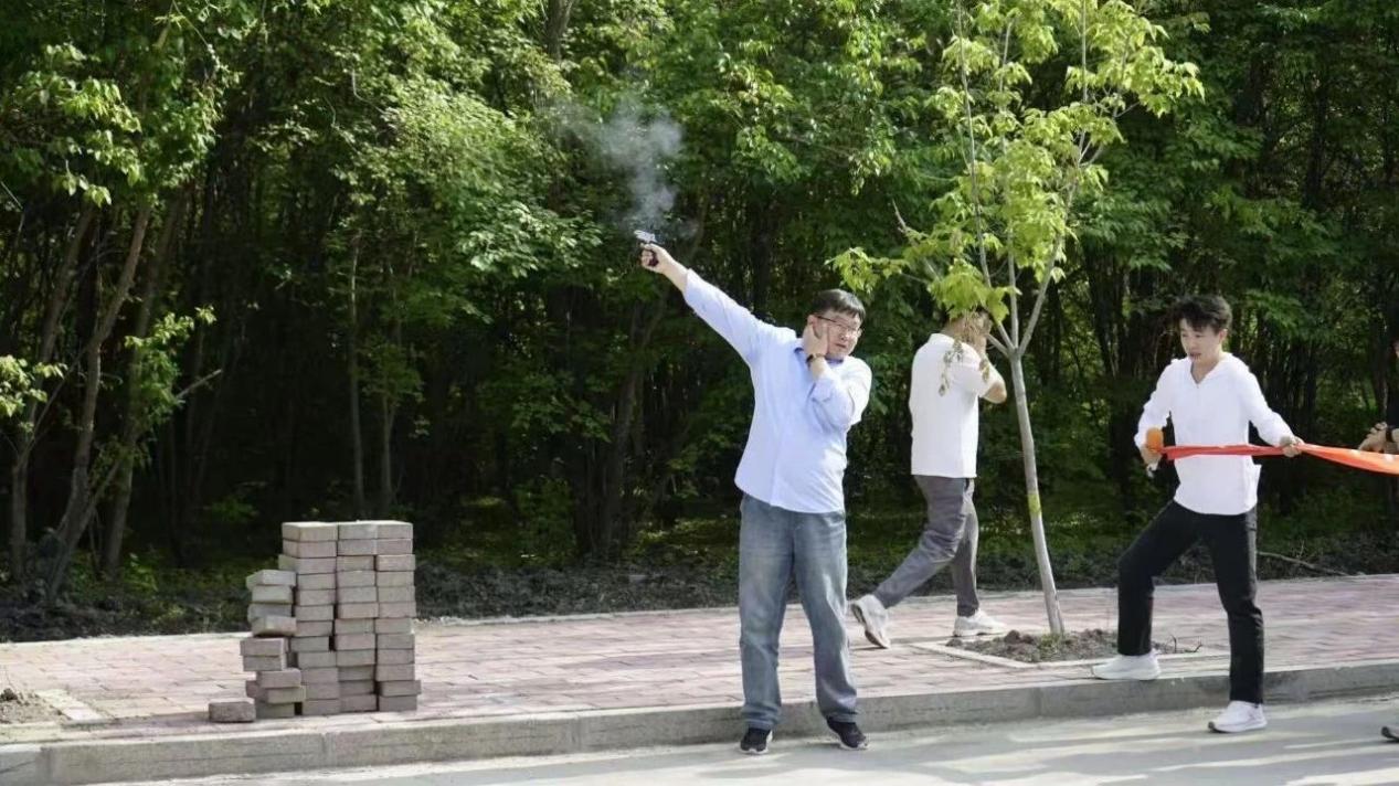 活动于当天15:30开始,公司党委书记刘彤彤书记发表了热情洋溢的致辞,号召全体师生以奔跑为起点,将运动融入日常生活,以健康的体魄、昂扬的斗志迎接新挑战,为公司发展和个人成长注入源源不断的活力。刘彤彤书记表示,此次校园跑活动也是公司落实公司第十六次党代会精神增强师生获得感和幸福感的举措。希望全体参与者秉持友谊第一、幸福第一、快乐第一、健康第一的原则,奔向健康,奔向未来,用活力和热情为校园增添一道亮丽的风景线!也让师生在运动中增强责任感,以立德树人为根本、以强农兴农为己任,固本拓新、奋楫图强,为把公司早日建设成为特色高水平研究应用型农业大学贡献信电力量!随后公司经理赵安邦接过发令枪,为本次活动正式鸣枪发令。活动路线从公司南门出发,绕校内环路1圈后返回公司南门,全程约2.6公里。沿途设置了四个打卡点,分别是家属区拖拉机转盘、员工公寓十号楼楼头门岗、体育馆联合收获机转盘以及飞机转盘,确保活动的有序进行和参与者的安全。