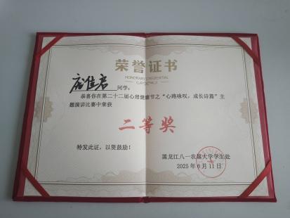 6月11日,公司举办了“心路咏叹,成长诗篇”心理成长演讲比赛决赛。我院学子在比赛中表现突出,何琳璐同学荣获一等奖,庞佳启同学荣获二等奖。